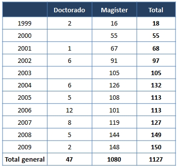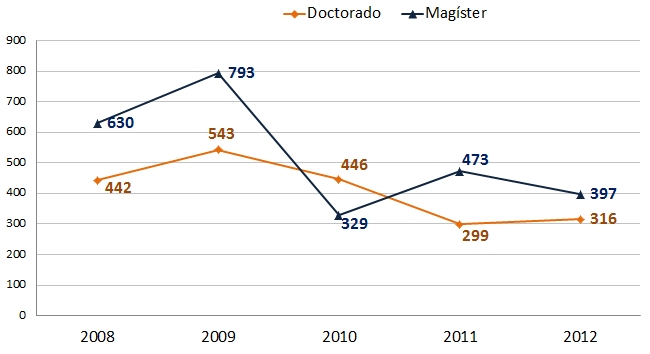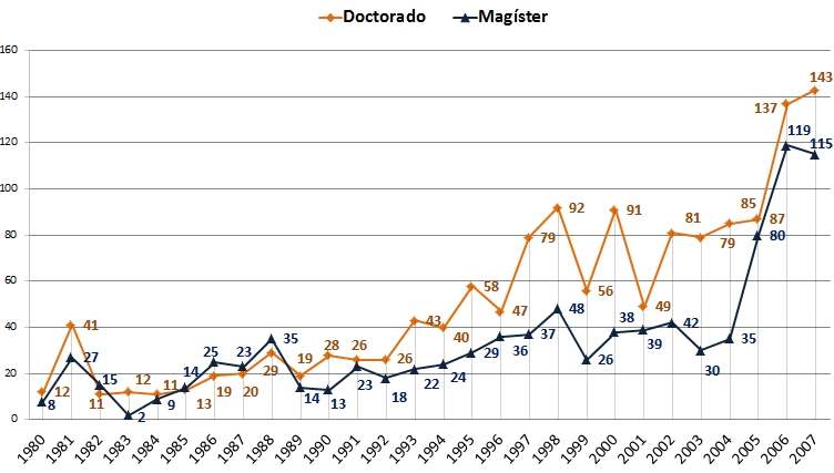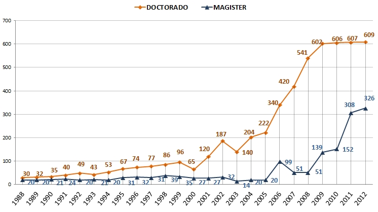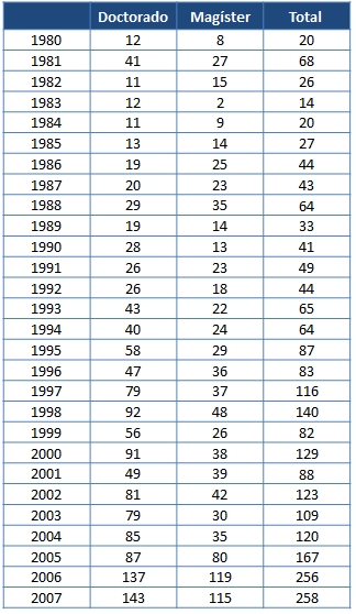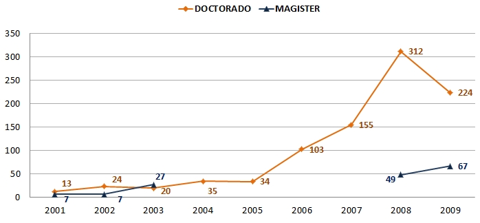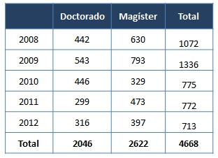 • Entre el 2003 y el 2008 no se abrieron concursos para Magíster.