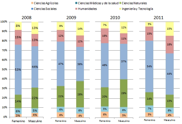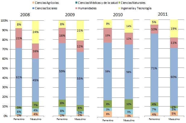 Comparativo Área de estudio / Género por convocatoria