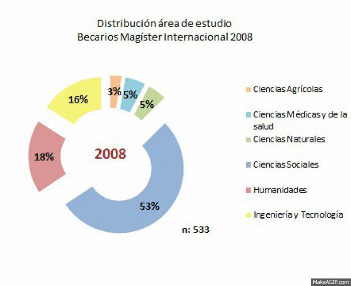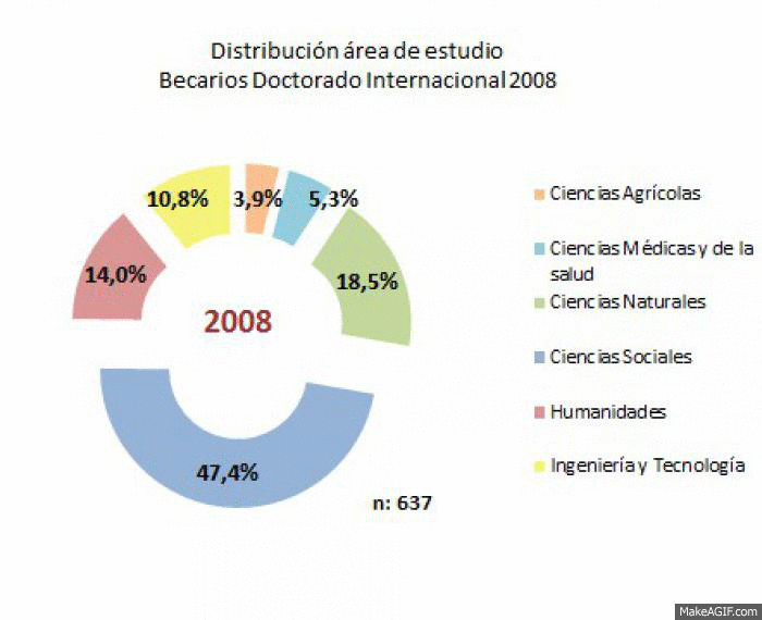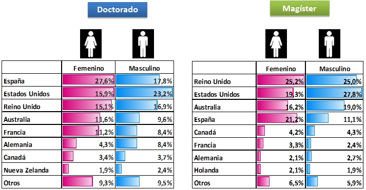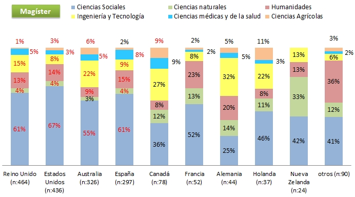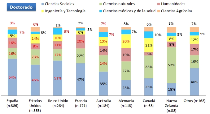 • Porcentajes en color rojo, corresponden a países con becarios sobre la media en cada área de estudio