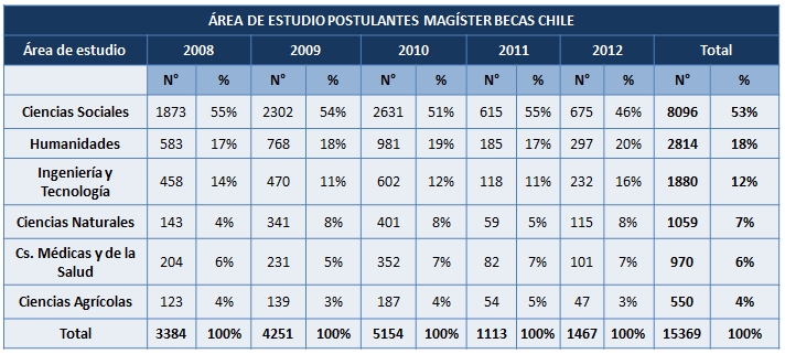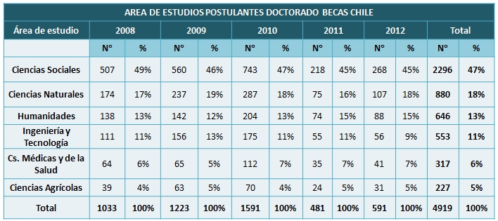 Distribución Área de Estudio Postulantes Doctorado-Magíster Becas Chile