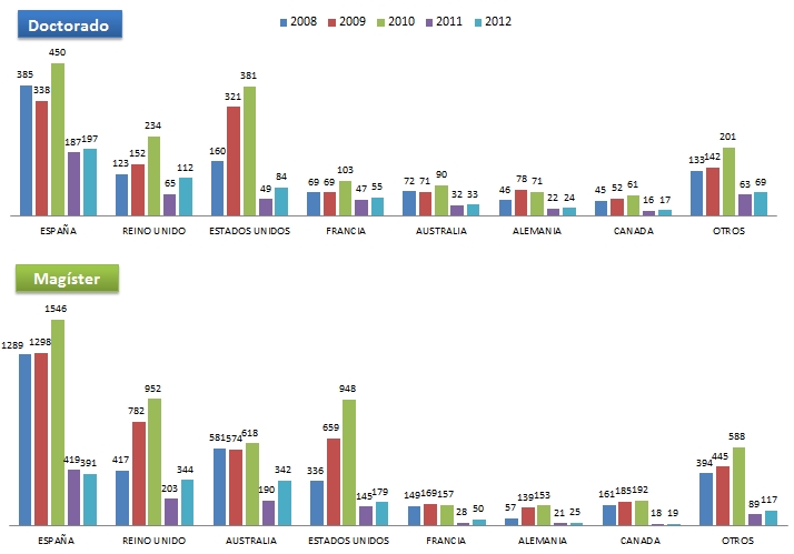 Postulantes Becas Chile Distribución por País de estudio, primera preferencia