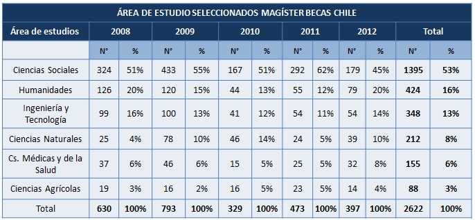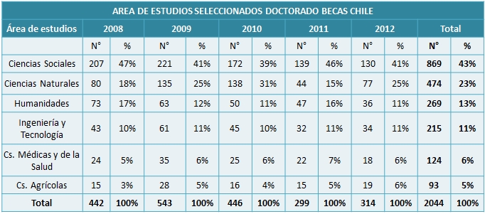 Distribución Área de estudio Seleccionados Doctorado-Magíster Becas Chile