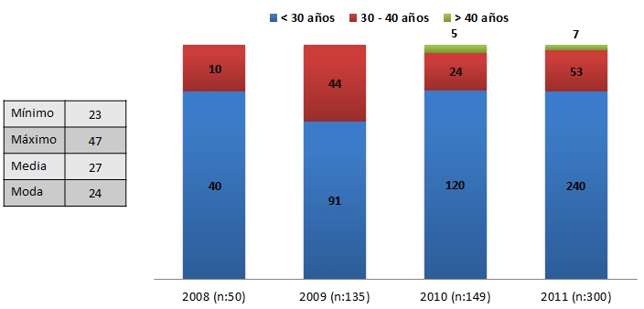 Rango Etario Becarios Nacionales Doctorado 2008 – 2011