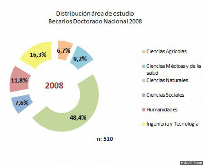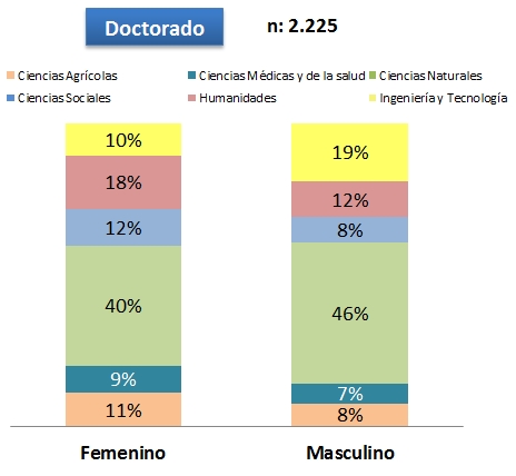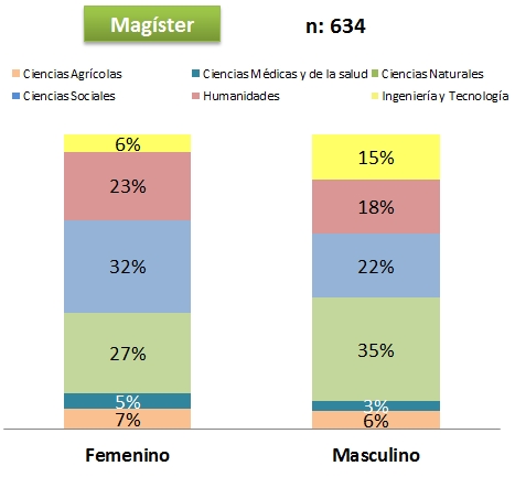Comparación área de estudio / género Becarios Doctorado – Magíster Nacional 2008-2011