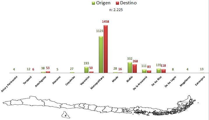 Comparación región de universidad origen y destino Becarios Magíster Nacional 2008 – 2011