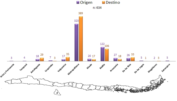 Comparación región de universidad origen y destino Becarios Doctorado Nacional 2008 – 2011