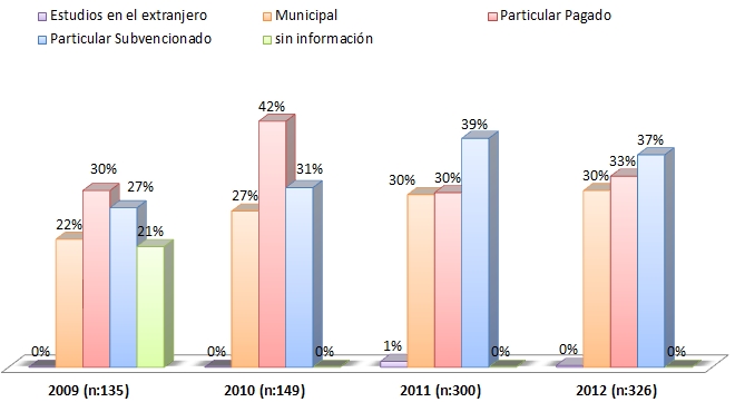 Distribución de becarios por establecimientos de Educación Media Magister Nacional 2009-2011 y seleccionados 2012