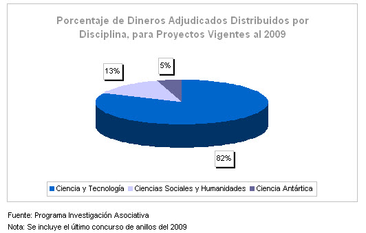 - Porcentaje de Dineros Adjudicados Distribuidos por Disciplina, para Proyectos Vigentes al 2009