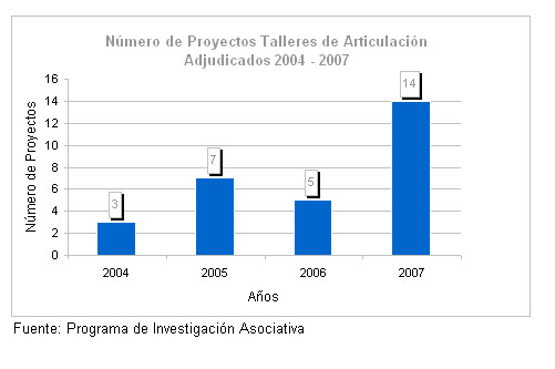 - Número de Proyectos Talleres de Articulación Adjudicados 2004 – 2007