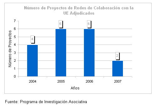 - Número de Proyectos de Redes de Colaboración con la UE Adjudicados