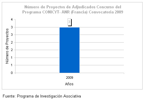 - Número de Proyectos de Adjudicados Concurso del Programa CONICYT- ANR (Francia) Convocatoria 2009